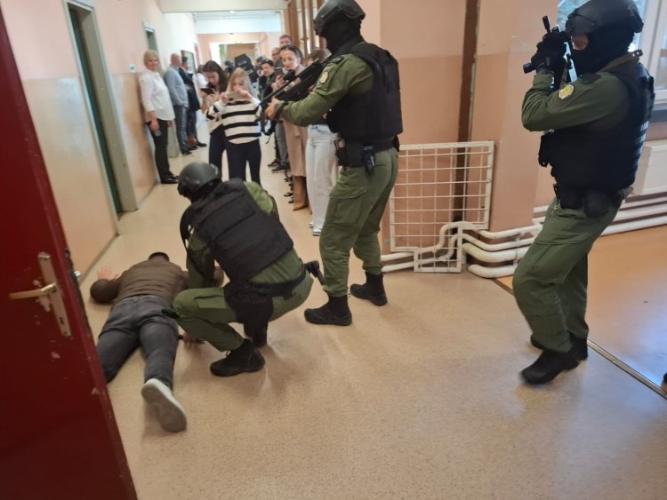 Foto: PU sisačko-moslavačkaTijekom protekla tri dana Policijska uprava sisačko-moslavačka provela je u tri škole na području Siska, Gline i Kutine vježbu simulacije napadača u školi. Ova vježba, organizirana kao edukacija ravnatelja, ali i osnivača škola, imala je za cilj pokazati koliko su tehnička priprema i pravodobna reakcija presudne u situacijama koje predstavljaju ozbiljnu prijetnju sigurnosti učenika i djelatnika.
